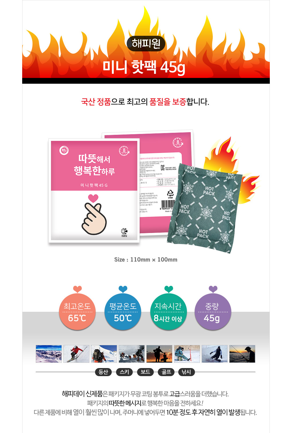 행복핫팩 미니 45g 국산