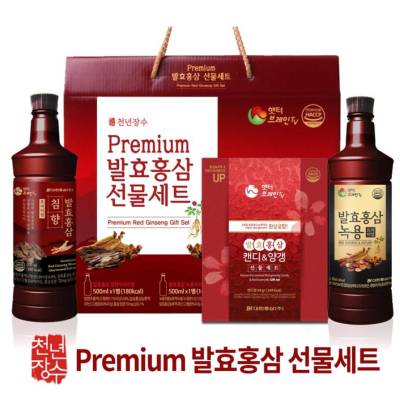 발효홍삼500ml+발효홍삼녹용 각 1병 .캔디10+양갱4개