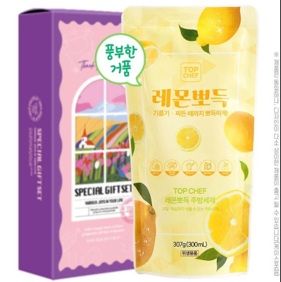 • 탑셰프 레몬뽀득주방세제307리필2P(2종) (상품코드 : W002570)