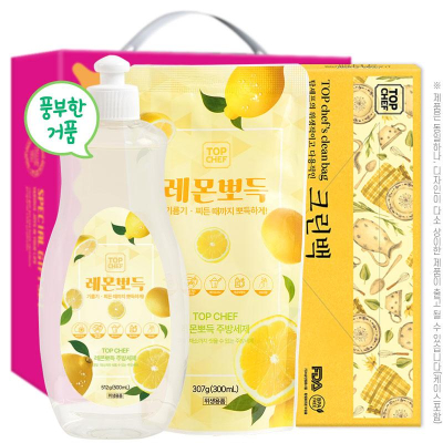 • 탑셰프 레몬뽀득주방세제512용기 307리필 크린백(3종) (상품코드 : W002574)