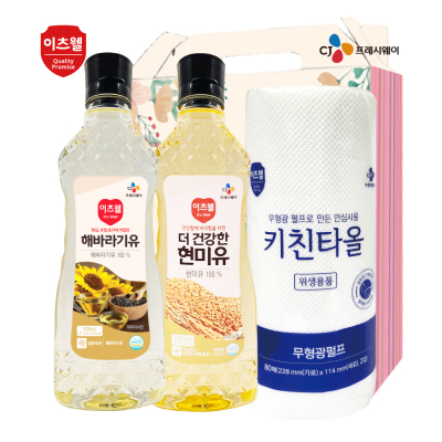 - 구성 : CJ현미유500m, CJ해바라기유500ml, CJ키친타올(228*114mm) 80매