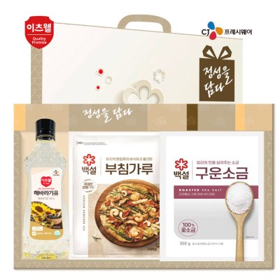 - 구성 : CJ해바라기유500m, CJ부침가루500g, CJ구운소금500g