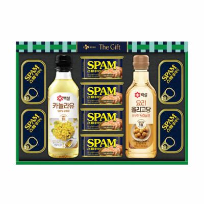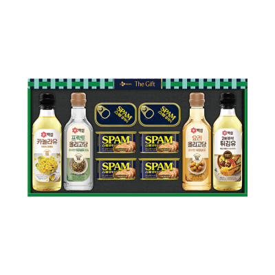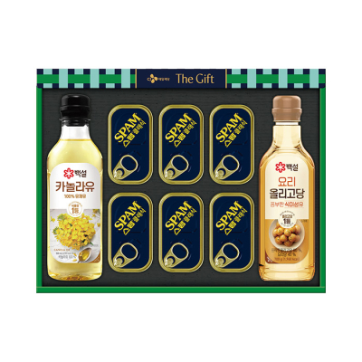 카놀라유 500ml * 1p, 고소함가득참기름 330ml * 1p, 요리올리고당 700g * 1p, 스팸 200g * 10p, 스팸 120g * 3p, 종이 쇼핑백, 499mm * 353mm * 58mm