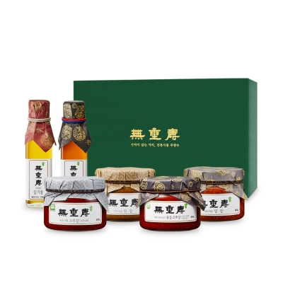 된장 600g, 고추장 600g, 한우볶음고추장 600g, 쌈장 600g, 참기름 165ml,들기름 165ml, 더덕장아찌260g, 무말랭이짠지 260g, 국간장 270ml, 참깨볶음110g, 고춧가루100g