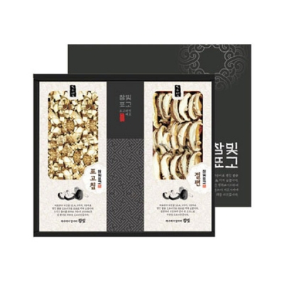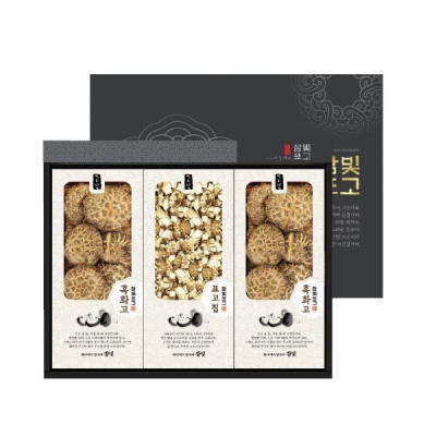 흑화고,표고칩,표고절편으로 구성된 참나무 표고선물세트,보자기동봉