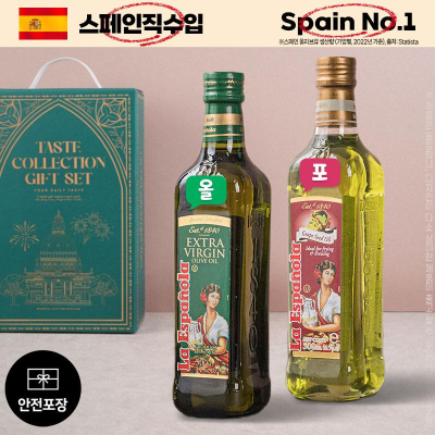 ♠. 올리브유(엑스트라버진) - 이태리 지중해 지역의 고품질 올리브만을 선별하여, 과육만을 짜내어 만든 산도 0.5% 미 만의 최고급 압착 올리브오일. - 올리브 특유의 상큼한 맛과 풀향기가 풍부하며, 건강에 좋은 불포화지방산과 항산화성분 인 비타민E, 토코페롤, 폴리페놀등이 다량 함유된 웰빙오일. - 발연점(190℃)이 낮아 샐러드드레싱 및 피자, 파스타,스테이크등 가벼운 볶음요리에 적합. ♠. 해바라기씨유 - 보존료나첨가물없이 100%해바라기씨만을 최첨단자동화공정시스템으로압착/정제 한오일. 일반 식물성기름보다 비타민A, 비타민E가 다량 함유되유 단백질, 지방 등 영양소 흡수를 높 여주며 면역력 강화에 도움이 되는 웰빙오일. - 발연점(240℃)이 높고 향이 없어 다양한 용도로 사용 가능하며, 튀김이나 부침요리 시 더욱 바삭하고 고소한 맛을 낼 수 있음. ■ 상품 구성
