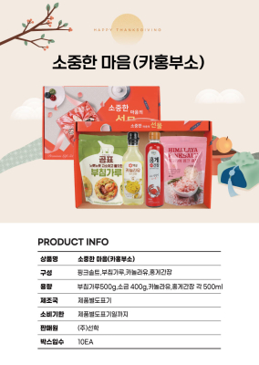 카놀라유 500ml * 1p, 홍게간장 500ml * 1p, 곰표부침 500g * 1p, 핑크솔트 400g * 1p, 손잡이 케이스, 420mm * 60mm * 280mm