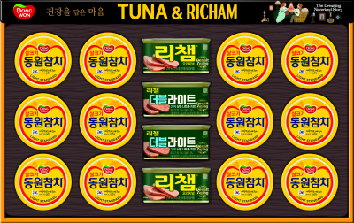 라이트스탠다드참치 135g * 6캔, 리챔 오리지널 120g * 2캔, 참치액(진) 500g * 1병, 올리고당 700g * 1병, 참기름 160ml * 1병, 구운소금 210g * 1병, 요리유 480ml * 1병, 부직포 가방, 492mm * 323mm * 63mm