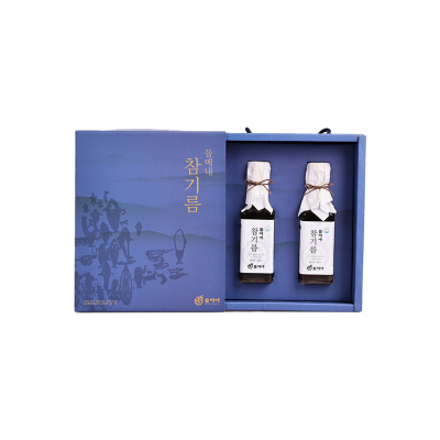 참기름 150ml * 2병, 끈 손잡이 케이스, 210mm * 250mm * 65mm