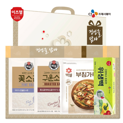 - 구성 : CJ구운소금500g, CJ꽃소금500g, CJ위생백(25*35cm) 50매, CJ부침가루500g