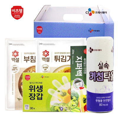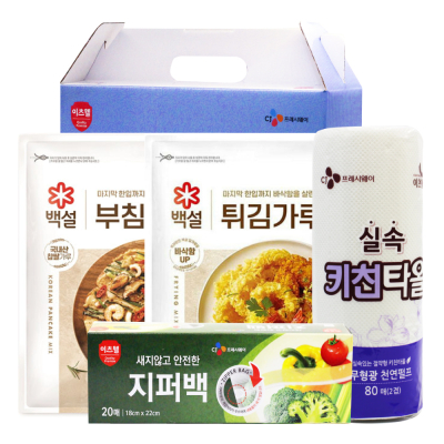- 구성 : CJ부침가루500g, CJ튀김가루500g, CJ위생장갑(23.5*27cm) 30매, CJ지퍼백(18*22cm) 20매, CJ키친타올 80매
