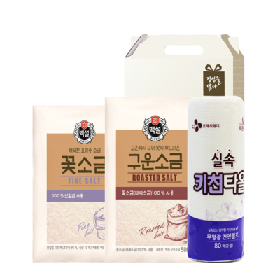 - 구성 : CJ구운소금500g, CJ꽃소금500g, CJ키친타올(228*114mm) 80매