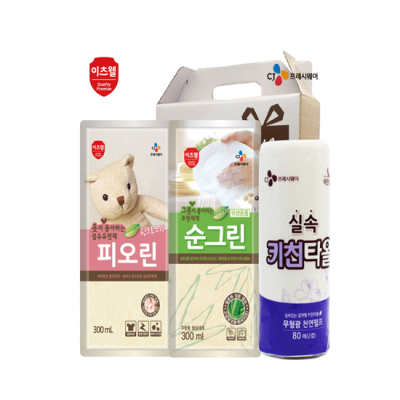- 구성 : 순그린300ml(리필), 피오린300ml(리필), CJ키친타올(228*114mm) 80매