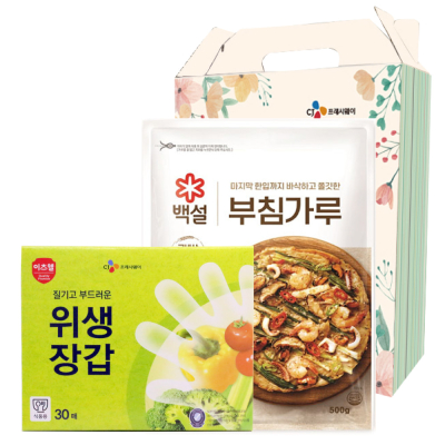 - 구성 : CJ부침가루 500g * 1p, CJ위생장갑(23.5*27cm)30매
