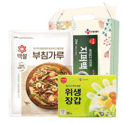 - 구성 : CJ부침가루500g * 1p, CJ위생장갑(5*27cm)30매, CJ지퍼백(18*22cm)20매