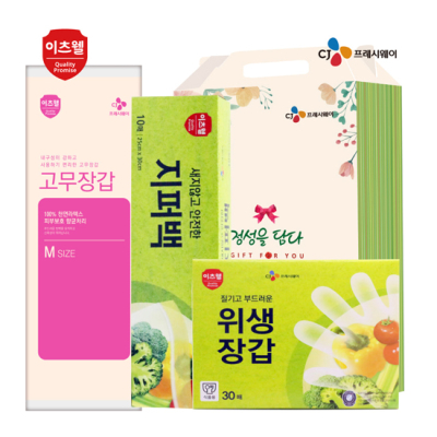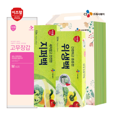 - 구성 : CJ위생백(25*35cm) 50매, 위생3종홈세트(위생백25*35cm-40매,위생장갑23.5*27cm-20매,지퍼백25*30cm-5매), CJ고무장갑(M사이즈)