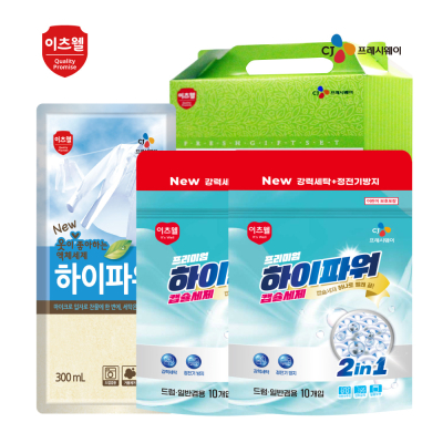 - 구성 : 하이파워 캡슐세제10개입 * 1p, 하이파워(리필)액체세제300ml * 1p, 순그린(용기)주방세제320ml * 1p, 피오린(리필)섬유유연제300ml * 1p
