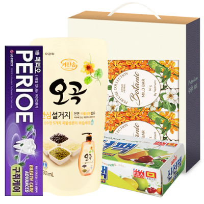 • 무궁화 오곡 안심설거지 리필 300ml + 페리오 치약 100g + 온더바디 비누 80g 2개 + 크린손 신선팩 100매[101-226461]