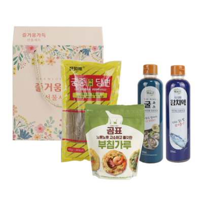 - 구성 : 궁중당면400g * 1p, 곰표 부침가루500g * 1p, 굴소스500ml * 1p, 참치액500ml * 1p