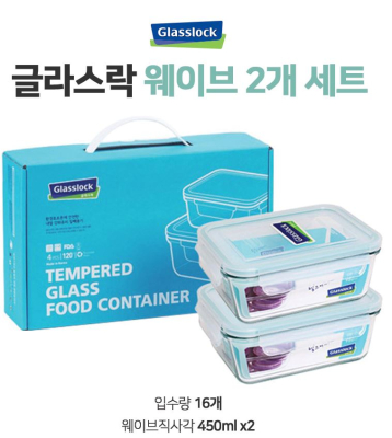 밀폐용기 글라스락 웨이브 2조 (450ml x 2개)