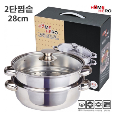 • 홈히어로 스텐 2단찜솥 28cm IH 인덕션겸용 찜기+냄비 전골냄비 양수냄비