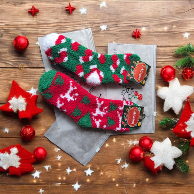 • 산타수면양말 겨울 따뜻한 보온 양말 지퍼백포장 크리스마스 수면 양말 연말 선물
