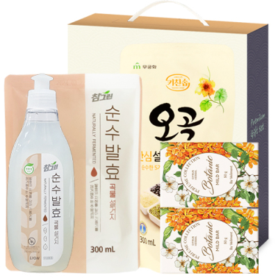 • [G]참그린 순수발효 곡물 주방세제 용기+리필+오곡 안심설거지 리필+온더바디 비누 2개[110-212257]
